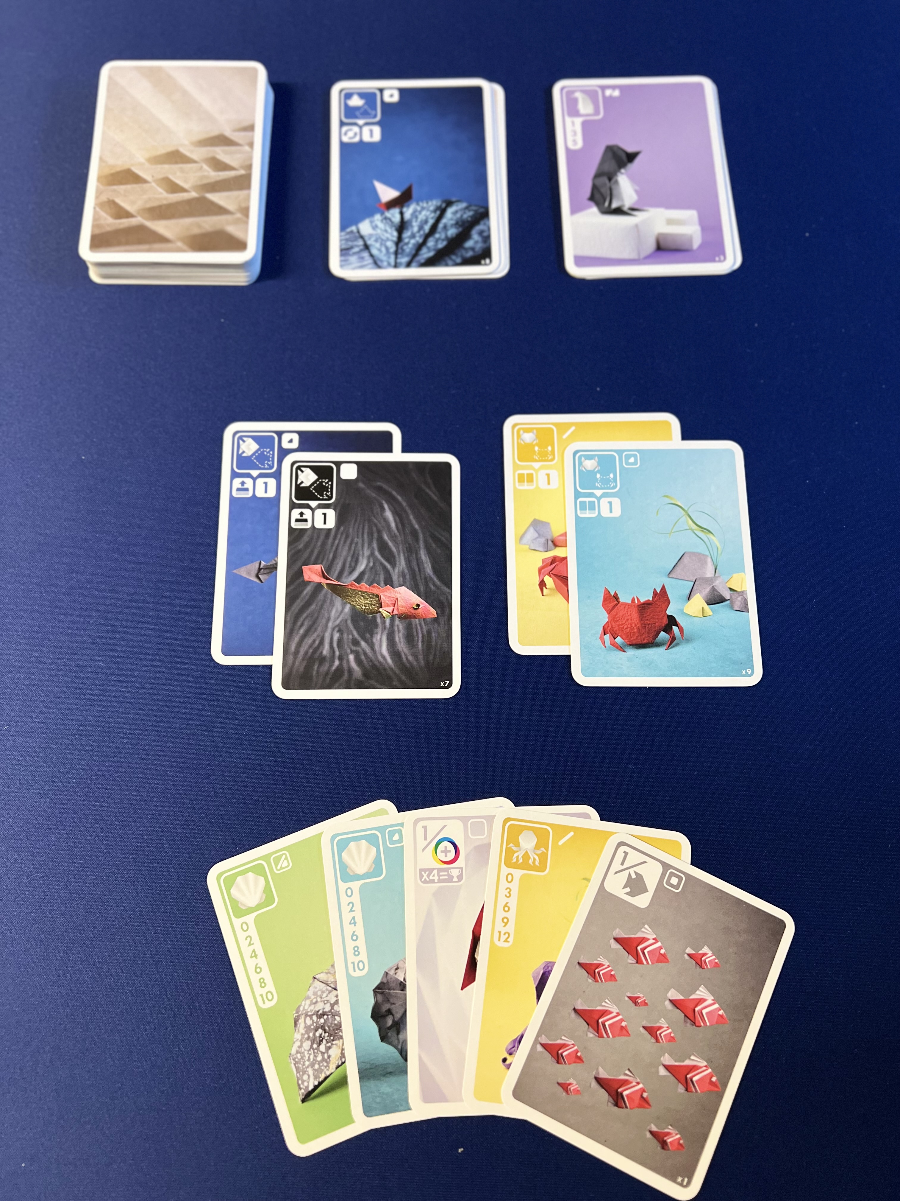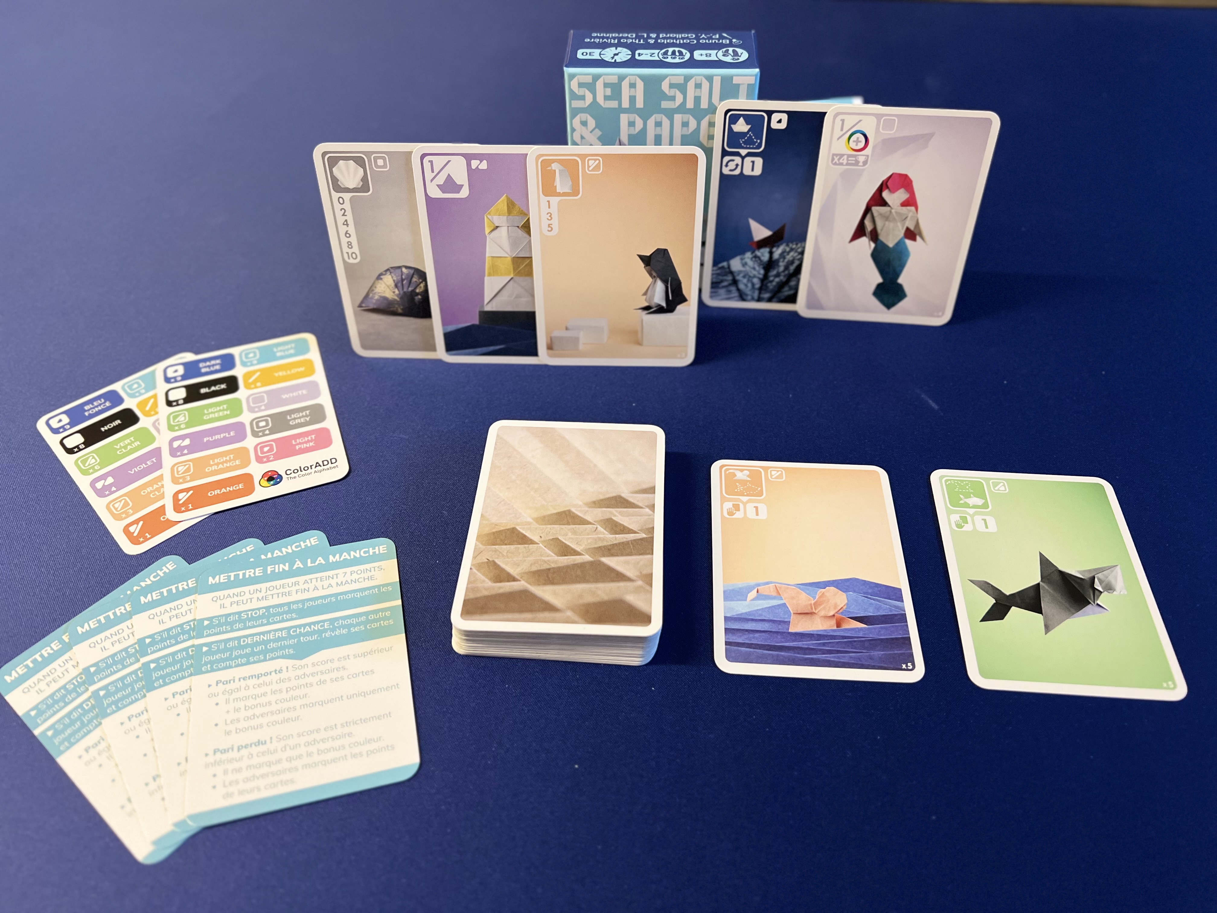 Sea, Salt & Paper est un petit jeu de carte très originalement illustré à l’aide d’origamis (art du pliage japonais particulièrement sympathique, je vous invite d’ailleurs à vous y essayer à vos heures perdues).